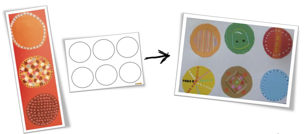 Nous avons découvert la vie des aborigènes à travers cet album , l’art aborigène et leur façon de réaliser des rêves : histoires codées gardant la mémoire de la vie des ancêtres.