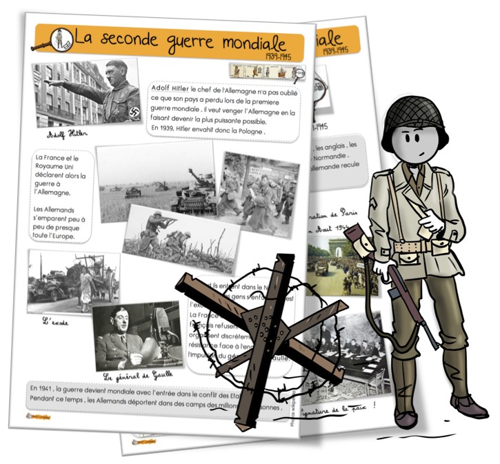 Voilà , j’ai enfin fini mes fiches sur la seconde guerre mondiale adaptées à mes petits CE1 !