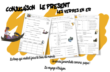 Voici 3 fiches d’exercices sur le présent des verbes en -er sur 3 albums :