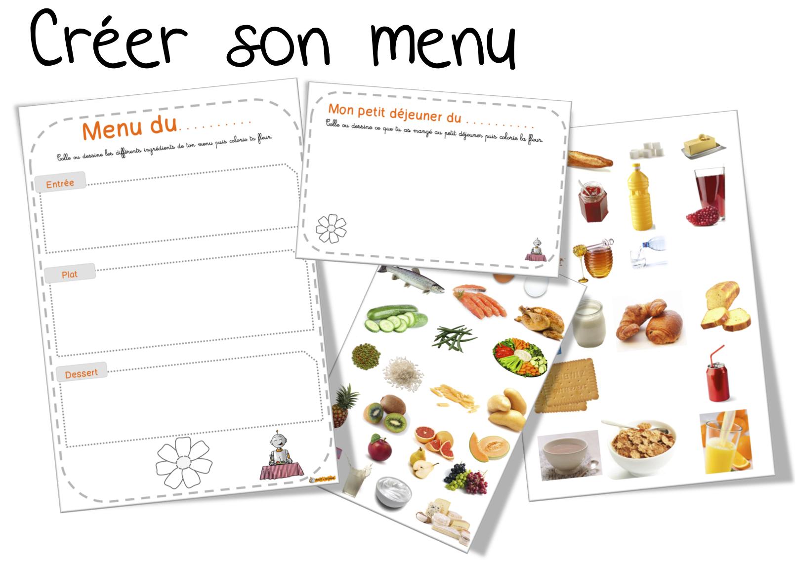 Créer avec les photos un menu équilibré ou un petit déjeuner . ( gouté lors de cette semaine ou pas )
