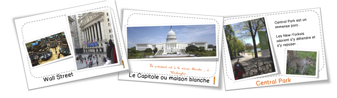 Voici des photos, diaporamas, explications détaillées mais très très simples pour nos petits élèves : la carte du pays, les taxis New-Yorkais, Wall street, la Statue de la liberté, la maison blanche , Central Park, les gratte-ciel avec l’Empire State Building et le « Fer à repasser » , le pont de Brooklyn, les indiens et le grand canyon …(Illustrations BDG CM2 )