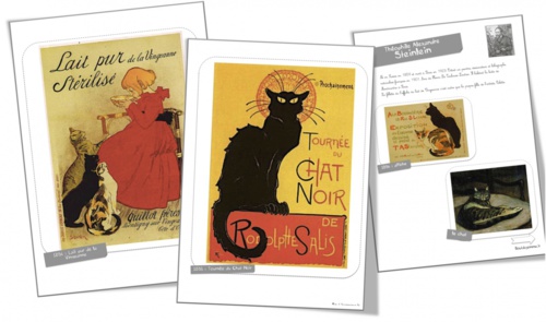 Voici un artiste : Théophile Alexandre Steinlen . Il a aussi peint beaucoup de chats sur des affiches publicitaires. (Merci à Zeclass pour les 2 premières fiches)