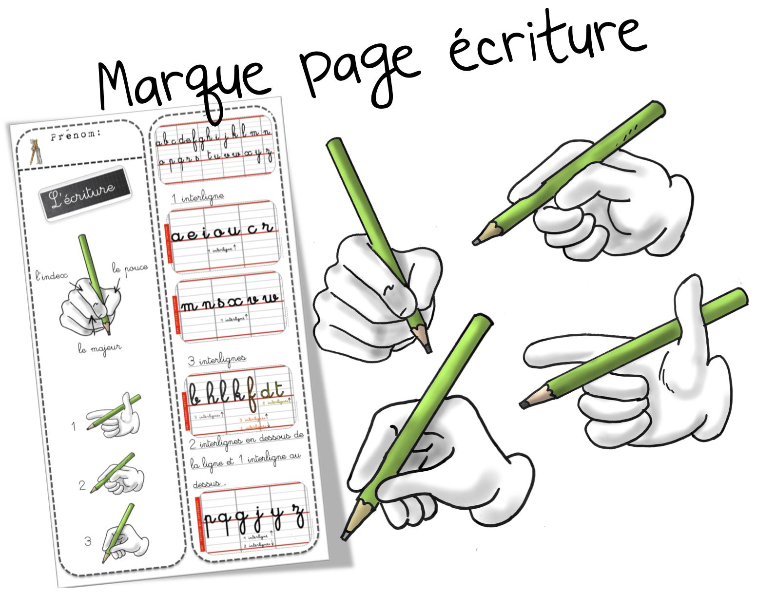Marque-pages sur la préhension de l’outil scripteur et de la taille des minuscules cursives : ici