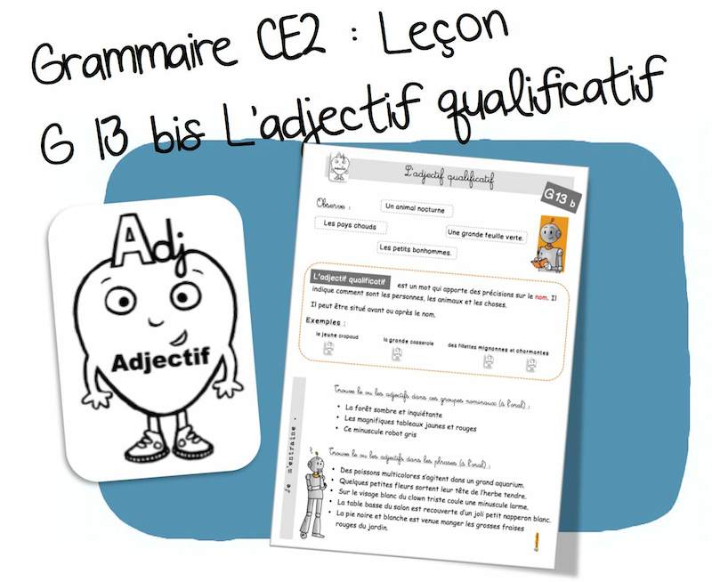 Cette leçon n’est pas présente dans cet ouvrage , mais je pense qu’un rappel de l’adjectif peut être intéressant avant d’aborder la fiche G13 : ici sur les expansions du groupe nominal ..