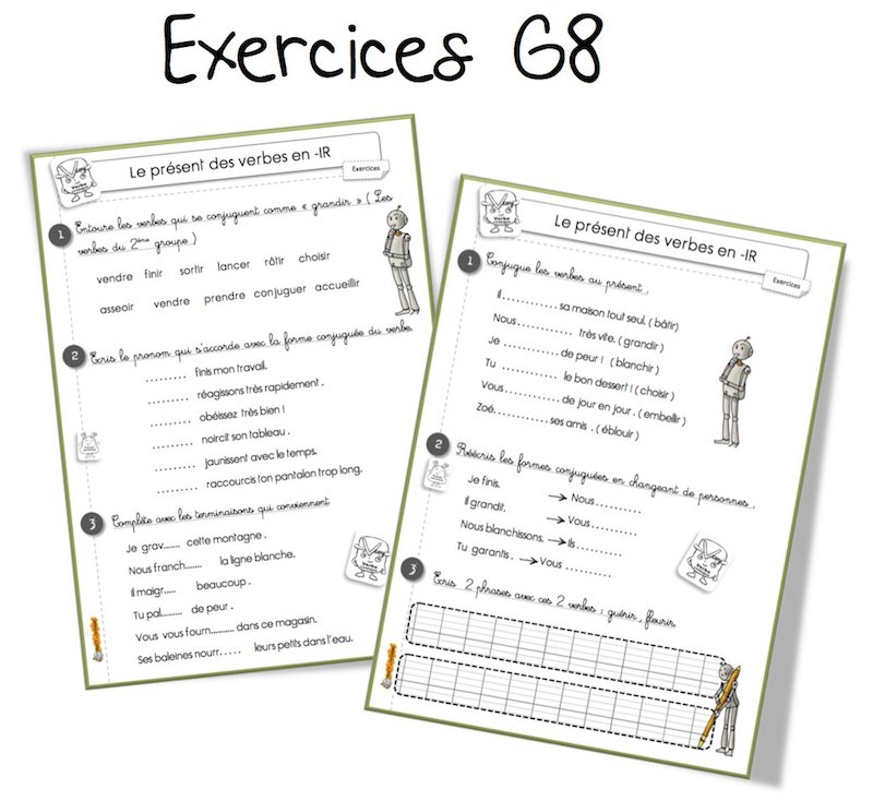 Leçon G8 : présent des verbes en -ir Exercices G8 : présent des verbes en -ir
