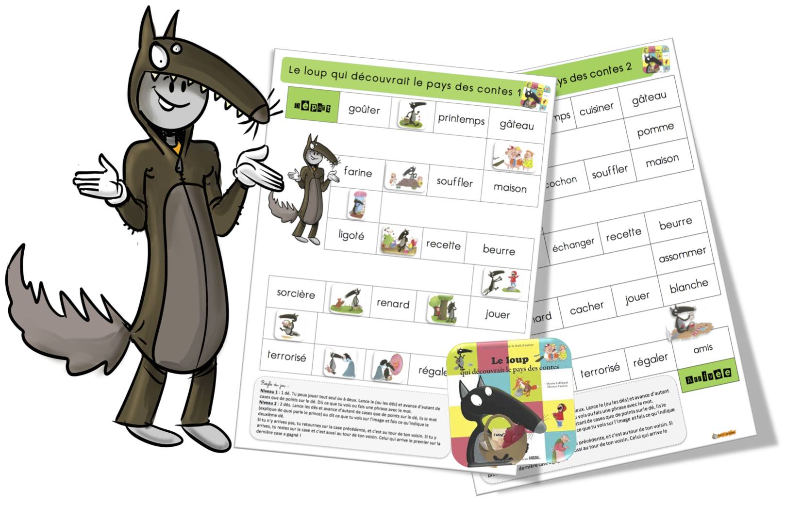 Voici les jeux de l’oie différenciés en lien avec l’album » Le loup qui découvrait le pays des contes »