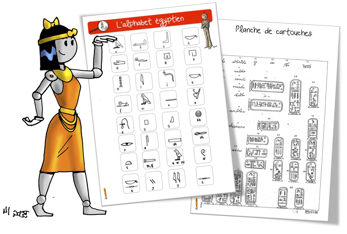 Voici mes fiches d’alphabet égyptien . Depuis le temps que BDG CM2 devait me les faire ! Merci merci !