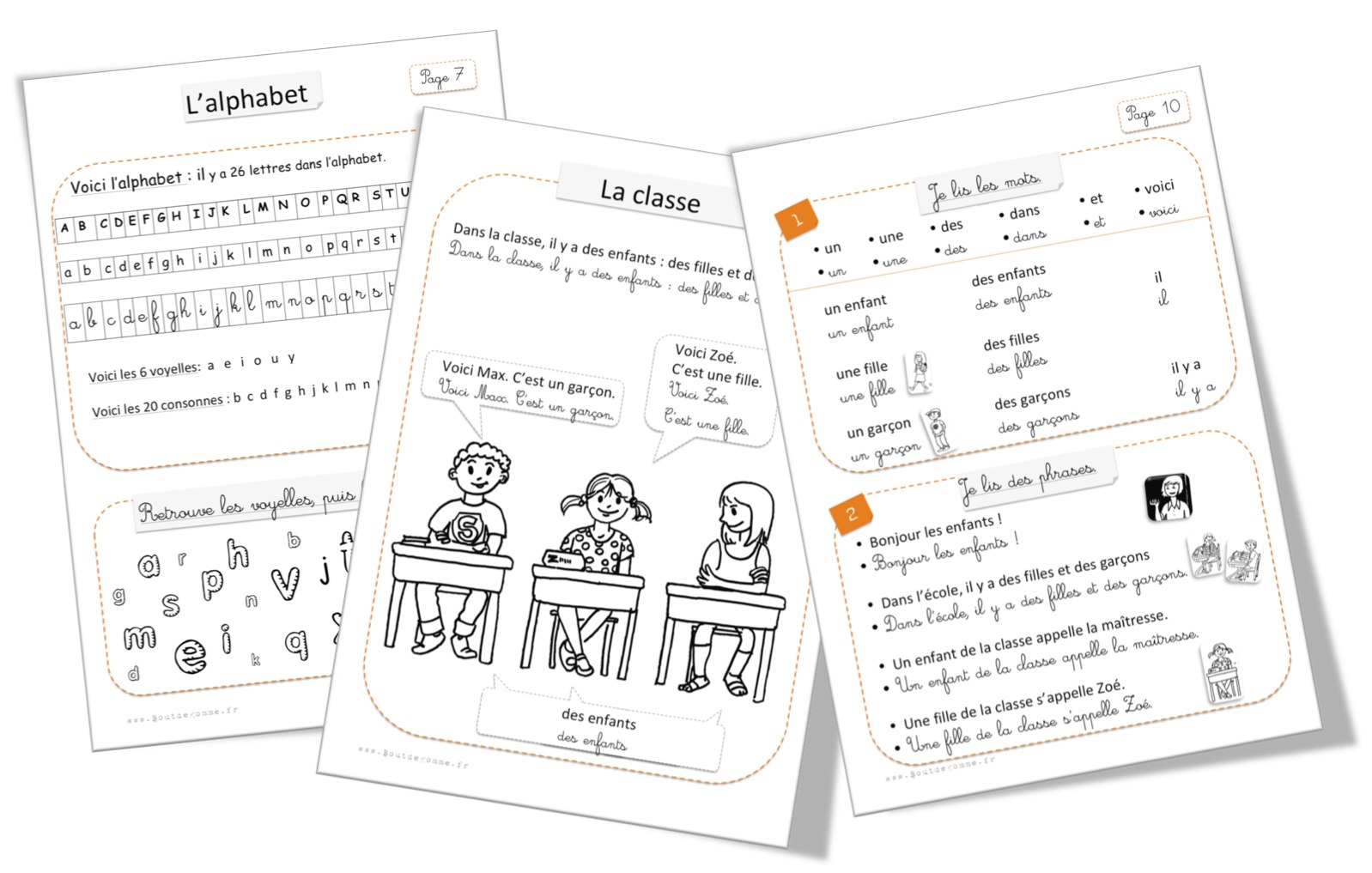 Pourrais-tu le déposer en fichier modifiable ou me le transmettre stp? Quelques détails me chiffonnent par rapport à notre vie de classe : les enfants n’ont pas école le mercredi (page 8), et j’aurai souhaité intégré directement les prénoms des élèves dans les phrases (page 9 et 10), et comme ils connaissent tous les lettres cursives majuscule, je souhaiterais les intégrer à la page 7 alphabet.