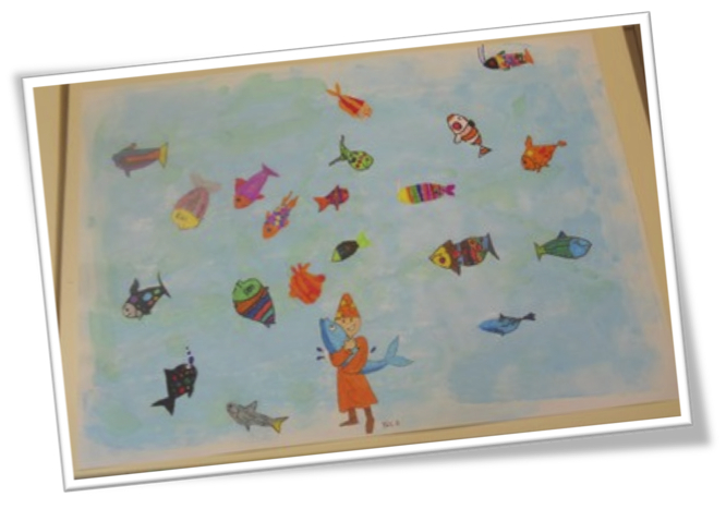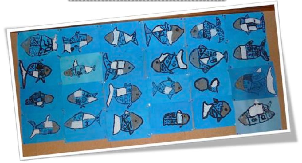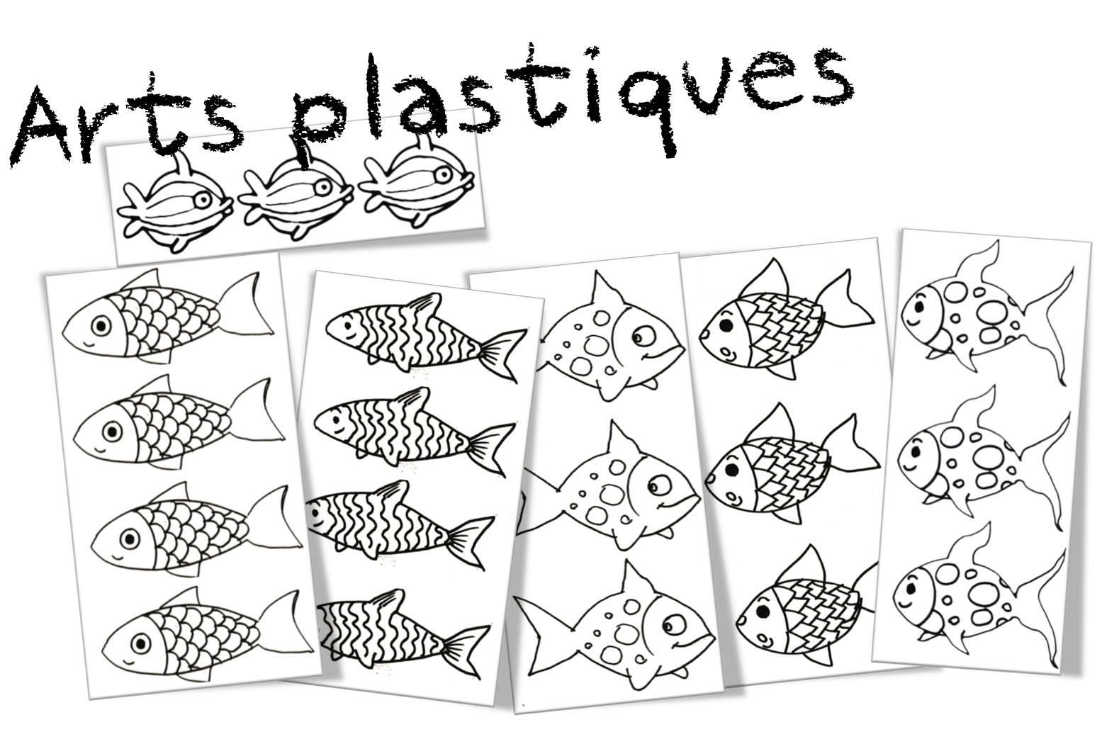 - Des ribambelles de poissons coloriés aux feutres , à l’encre, à la gouache, à la craie grasse…