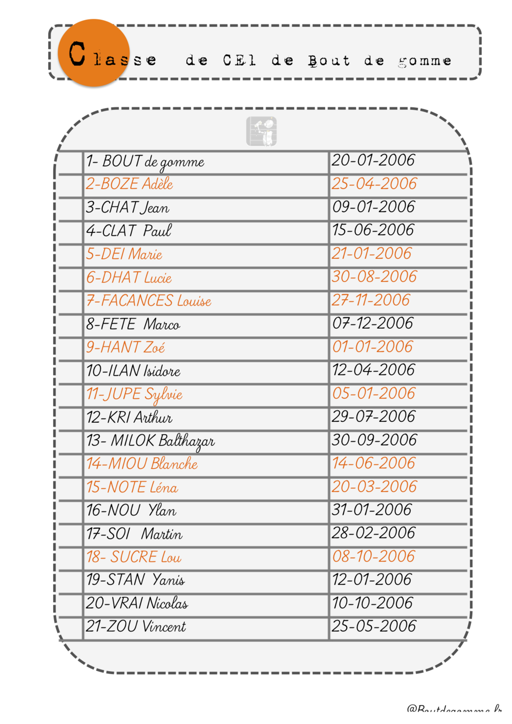Trop chouette!! Et trop fière de savoir que j’aurai la même liste d’élèves que ma cop’s!! Bon je suis jalouse je n’ai pas d’élève qui s’appelle CHAT ou ZOU