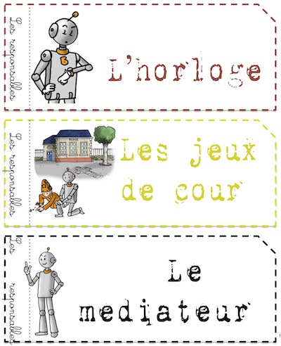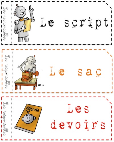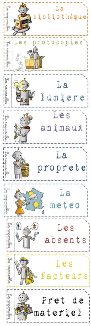 Chez moi aussi, ils adorent le magicien des maths et le robot des lettres. BDG, il me manque aussi le responsable bibliothéque. Ce serait possible….