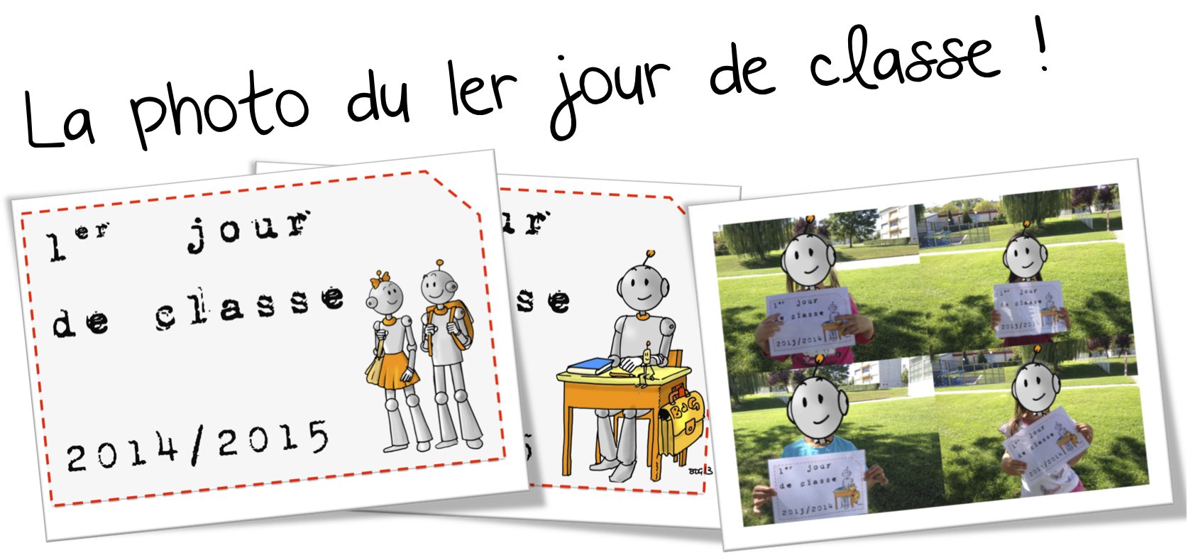 Sur une idée d’Amclera64 ( merciiii ! ) pour prendre la photo souvenir de nos élèves le premier jour .On peut ensuite s’en servir pour les portes manteaux ou toutes autres activités …ça détend l’atmosphère de ce premier jour qui peut être pesant pour certains .Sympa aussi à accrocher à la porte comme panneau d’accueil . …