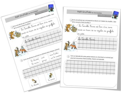 Voici donc deux fiches de production d’écrits sur la même trame que les dernières publiées pour Gruffalo et la galette à l’escampette pour l’album : Petit Gruffalo