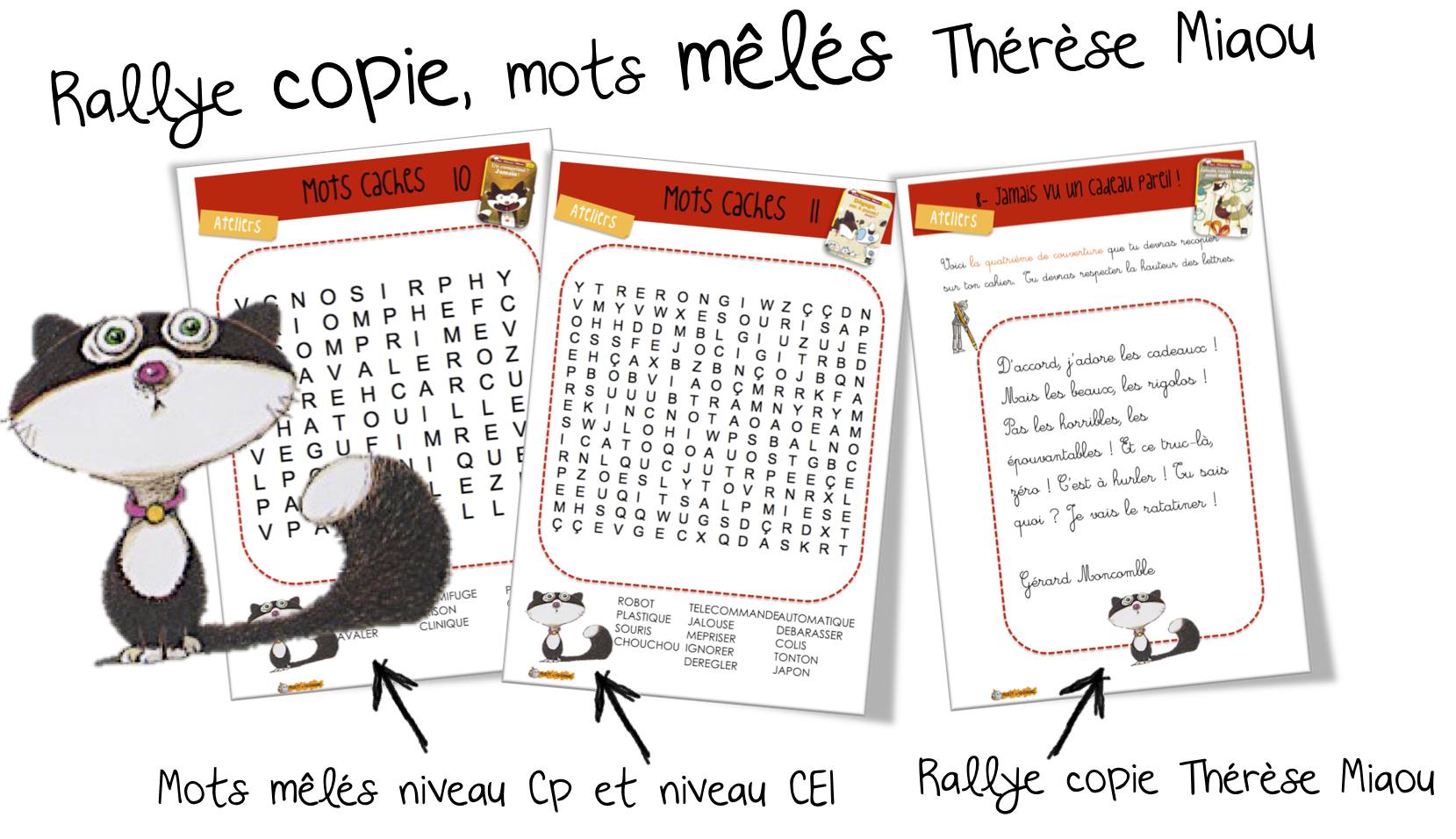 • Le rallye copie  et Les mots mêlés Thérèse Miaou  est ici