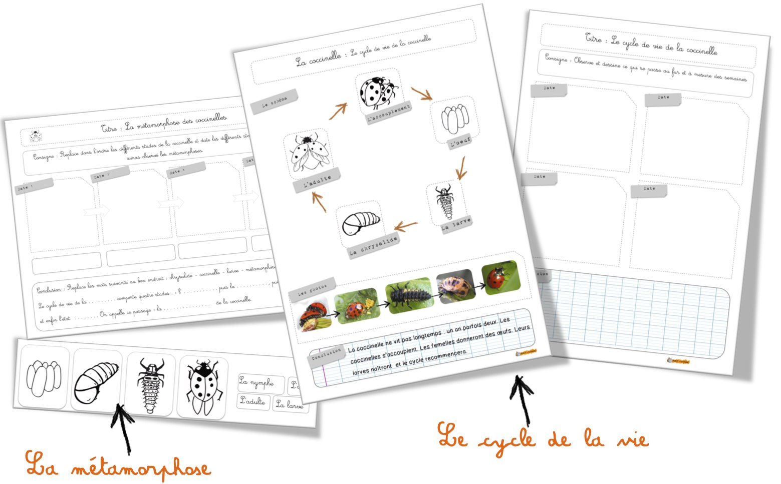 Voici les fiches « observation » pour les élèves sur la métamorphose de la coccinelle